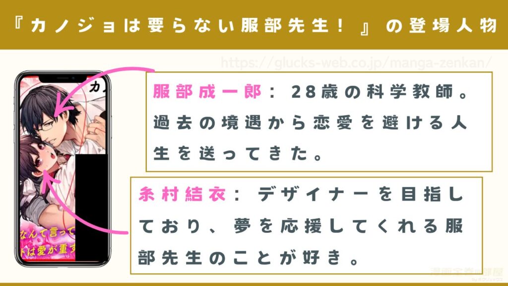 漫画『カノジョは要らない服部先生! ~恋は面倒なんて言ってホントは愛が重すぎる~』の登場人物は次のとおりです。