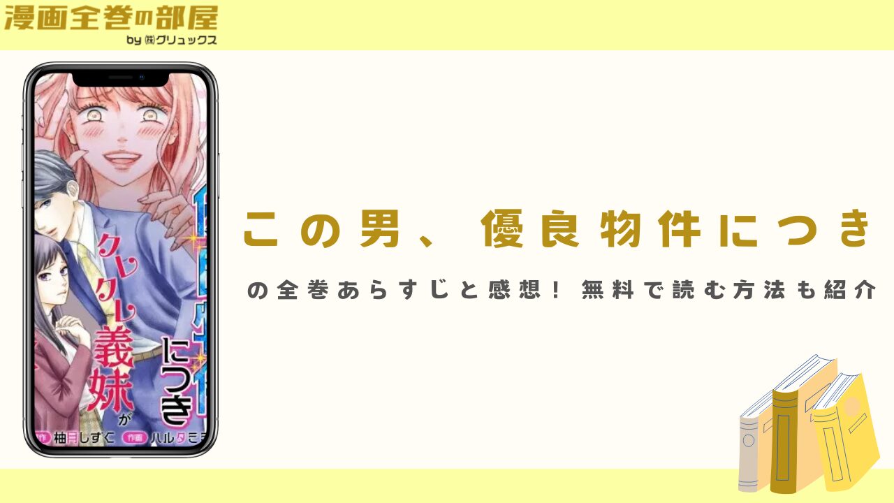 漫画全巻の部屋編集部が実際に漫画を読み、『この男、優良物件につき』のあらすじ・見どころを各巻ごとにまとめました。